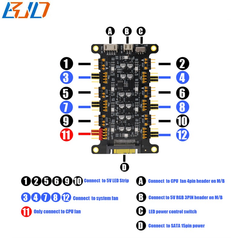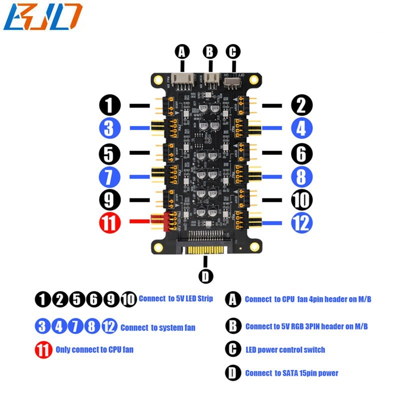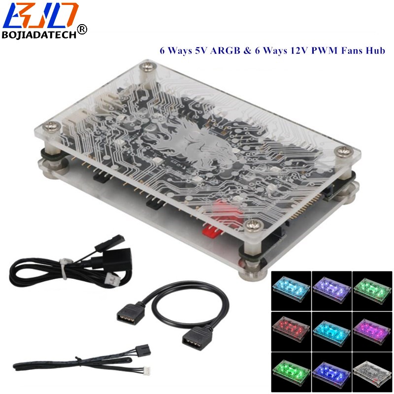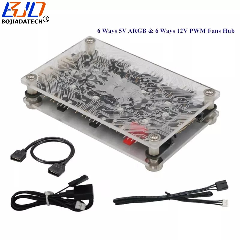 BJD 6 3Pin ARGB&6 4Pin PWM Fan Hub