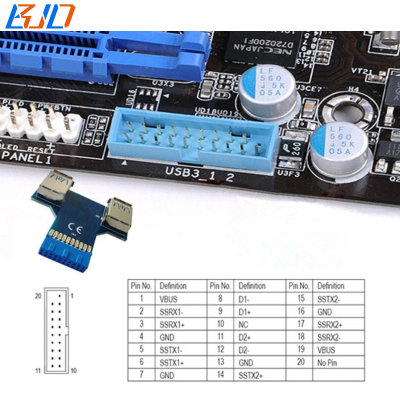 BJD USB 19PIN to 2 * USB 3.0 Adapter